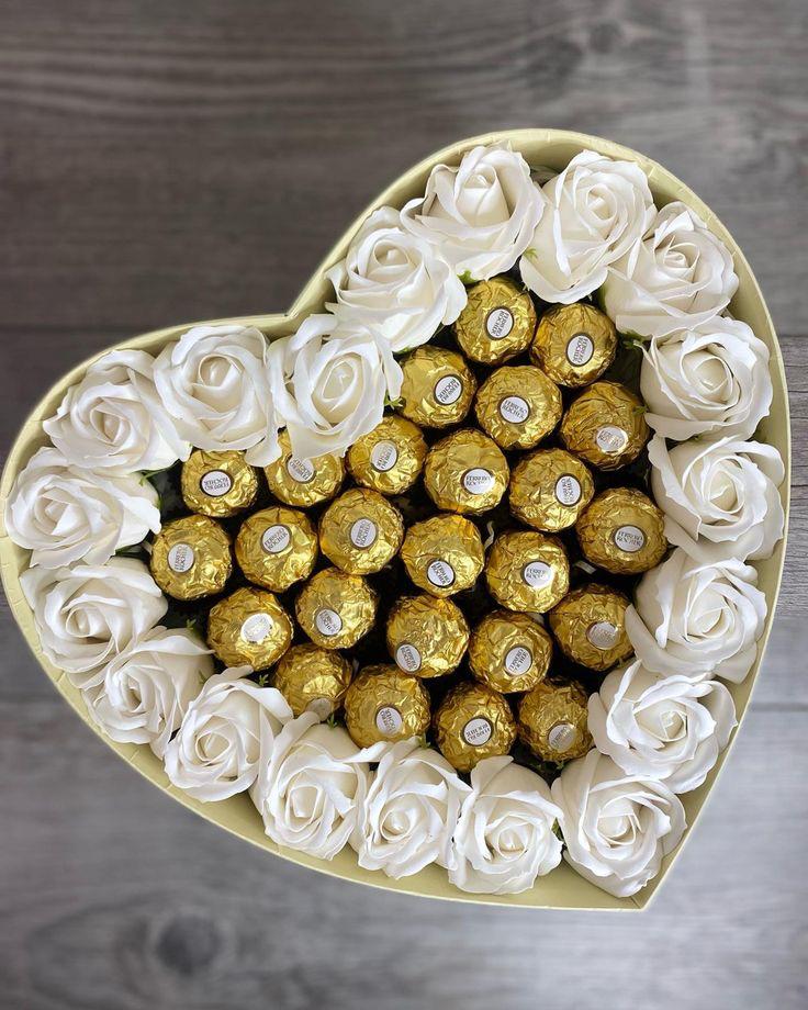 Large White Rose With Ferrero Rocher Gift BoxLarge White Rose With Ferrero Rocher Gift Box